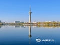 中国天气网讯 11月25日,北京晴暖无风,蓝天依旧,玉渊潭湖水如镜,蓝天倒映在湖水中,湖水融化在蓝天里,天地间景物融为一体,氛围感满满。(图/中国天气网王晓)