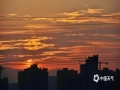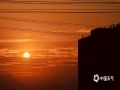 中国天气网讯 12月5日傍晚,北京落日熔金,天空出现金色流云晚霞,夕阳在纵横电线中如跳动音符。(图/中国天气网王晓)