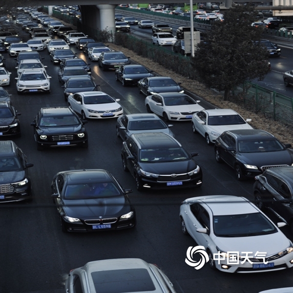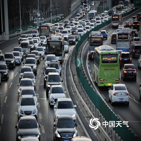 元旦假期后首个工作日 北京金色晨光中车流现拥堵