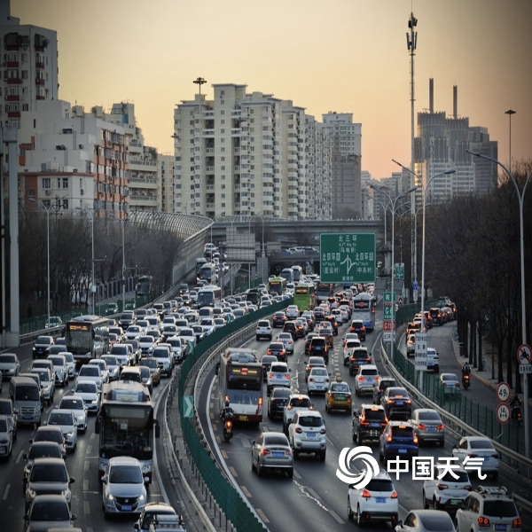 今天(1月3日)是元旦假期之后首个工作日,北京在晴朗天气中开场,金色晨光中,早高峰车流现拥堵。