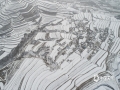 惊艳!航拍雪后甘肃定西梯田 宛如大地指纹