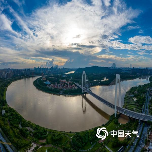 昨天(7月3日),广西南宁市城区降雨按下暂停键,雨水退去,云霞竞秀,邕江河畔风景如画。