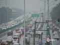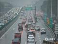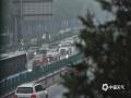 北京早高峰遇降雨 车辆排长龙出行受影响