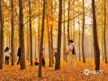 中国天气网讯 近日,河南汝州市区东郊银杏园叶子变黄,高空俯瞰金黄一片蔚为壮观,树下更是金叶铺地,夕阳映照熠熠生辉,景色唯美,吸引市民林间赏景游玩。图片拍摄于11月10日。(图文/黎新民)