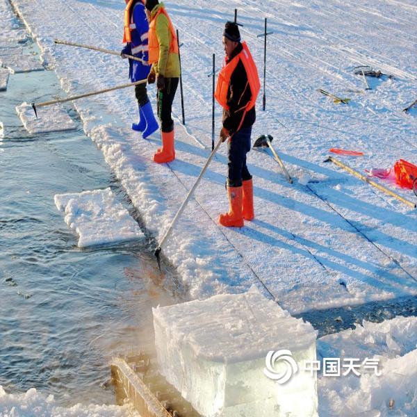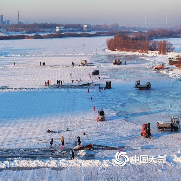 中国天气网讯 近日,哈尔滨松花江畔一年一度的冬季采冰已经开始,这些冰块将被运...