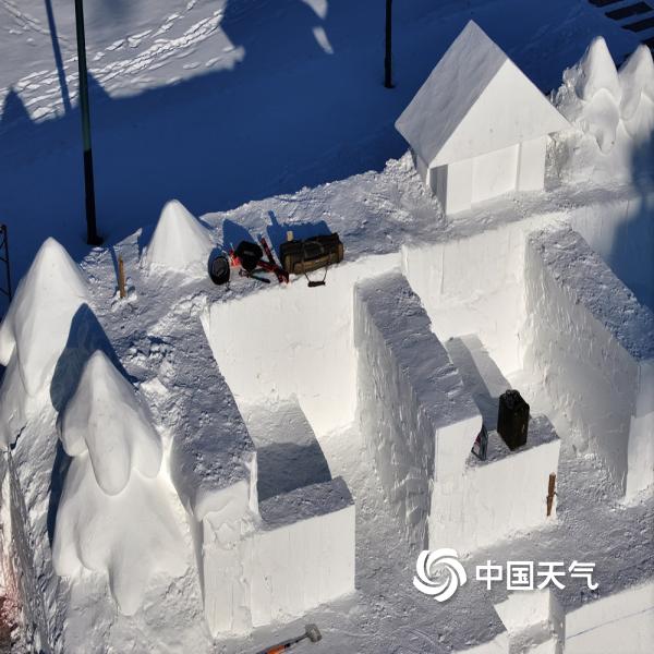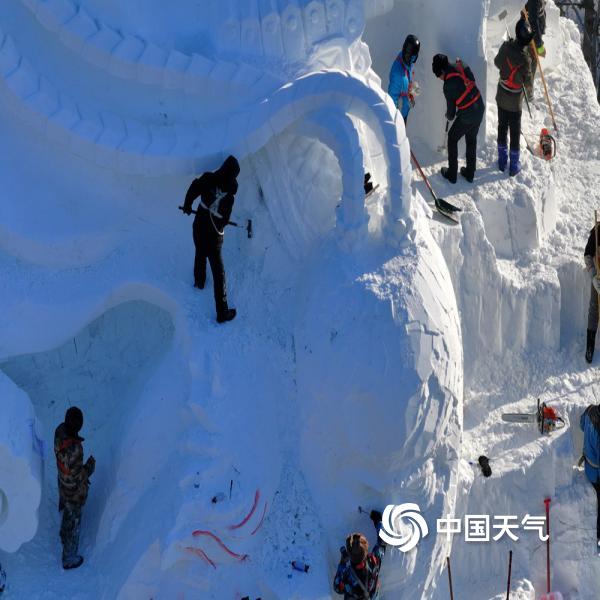 中国天气网讯 近日,哈尔滨太阳岛雪博会的多座大型雪雕正在紧张施工中,主塑尚在...