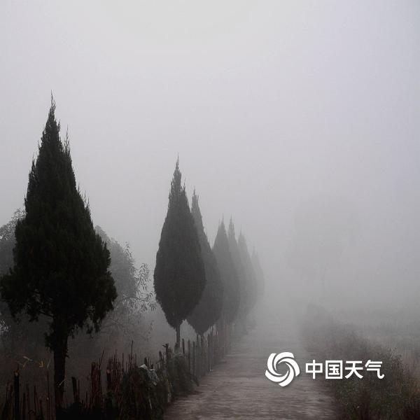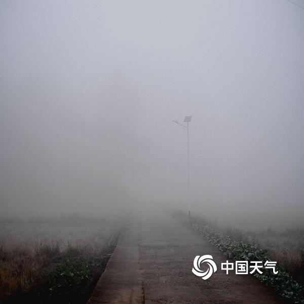 江西永新县境内出现能见度不足200米的大雾天气,周围山峦、田野、村庄全部“隐身”在浓雾之中。