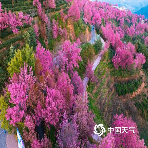 近日,云南大理,南涧无量山冬樱花盛开,粉如霞美如画,在冬日邂逅一场春的浪漫。
