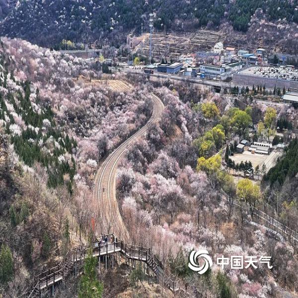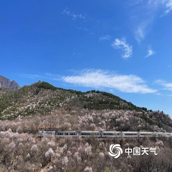 3月24日,北京居庸关花海栈道开放首日,近郊铁路S2线穿行花海之中,如“开往春天的列车”,引得大批拍客记录。
