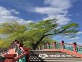 中国天气网讯 今天(4月1日),北京大风呼啸,柳枝随风摆动。天空中的白云随风而动,变幻不停,当靠近太阳时,洒落的阳光仿佛给云朵上妆,变得多彩起来。(图/中国天气网王晓)