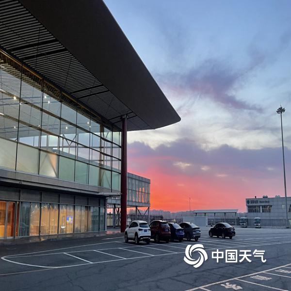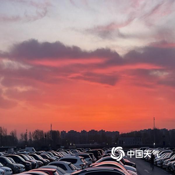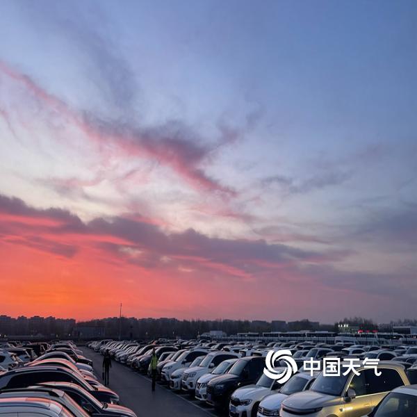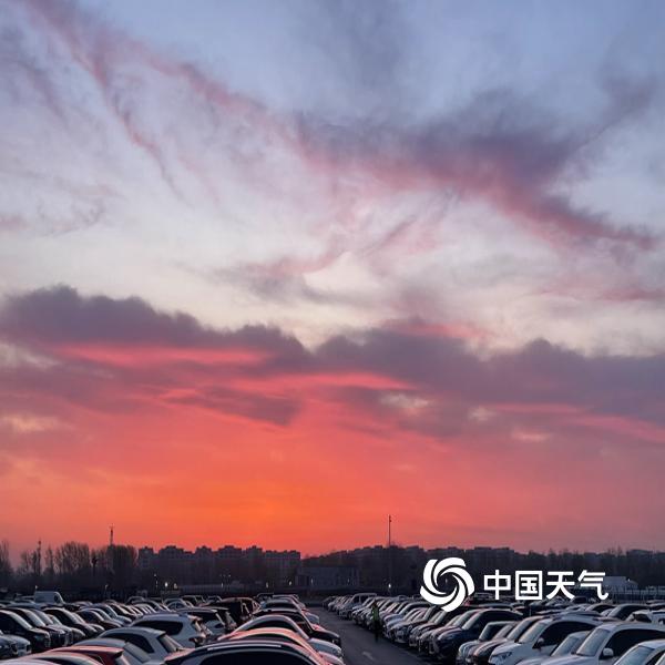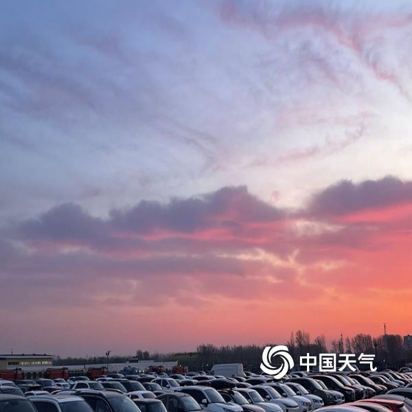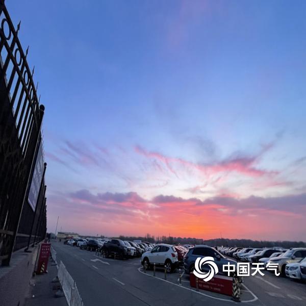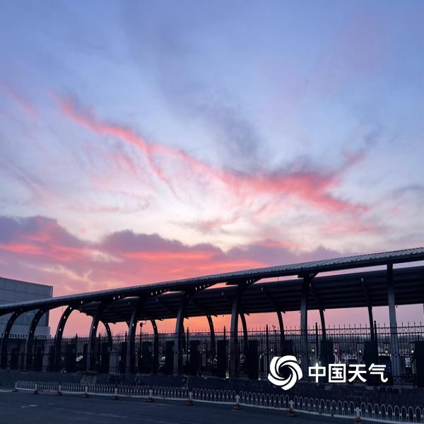 今晨北京天空朝霞相伴 渲染出春的温柔