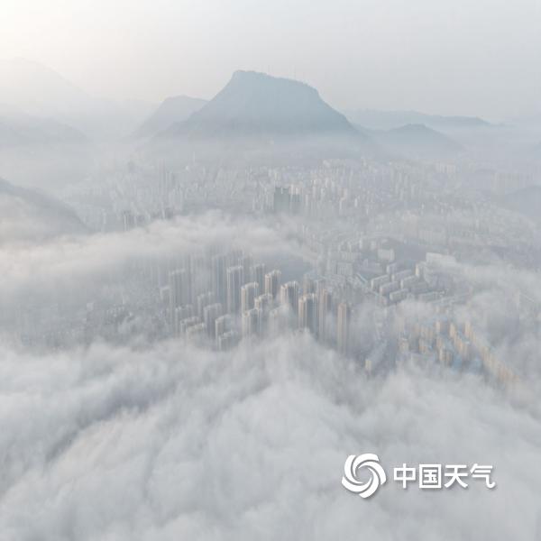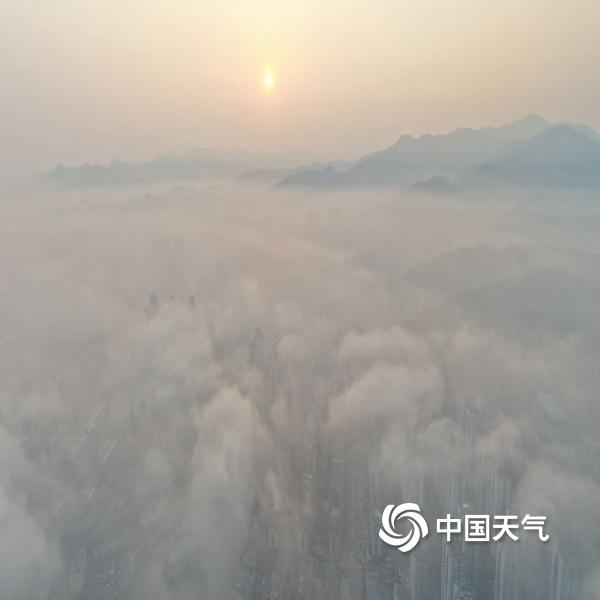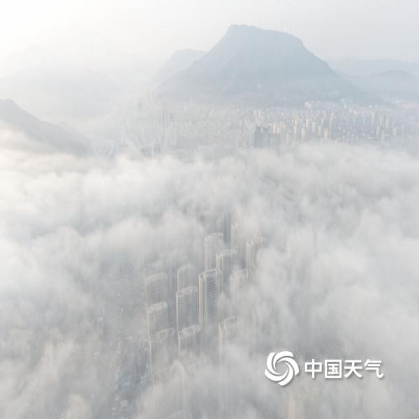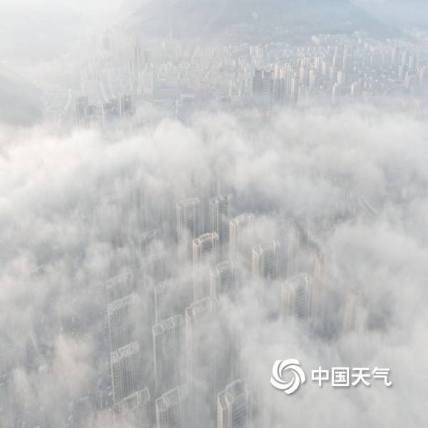 辽宁本溪出现大雾天气 俯瞰城市如在云端