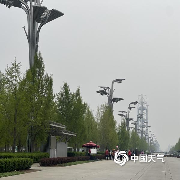 中国天气网讯 4月11日下午,北京天空能见度不佳,远处建筑若隐若现。(图/中...