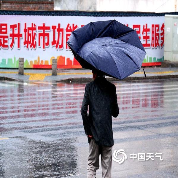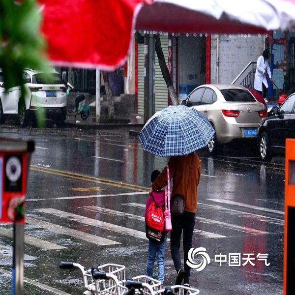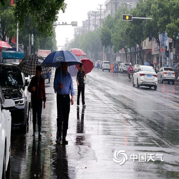 江西永新迎降雨 路面湿滑影响出行