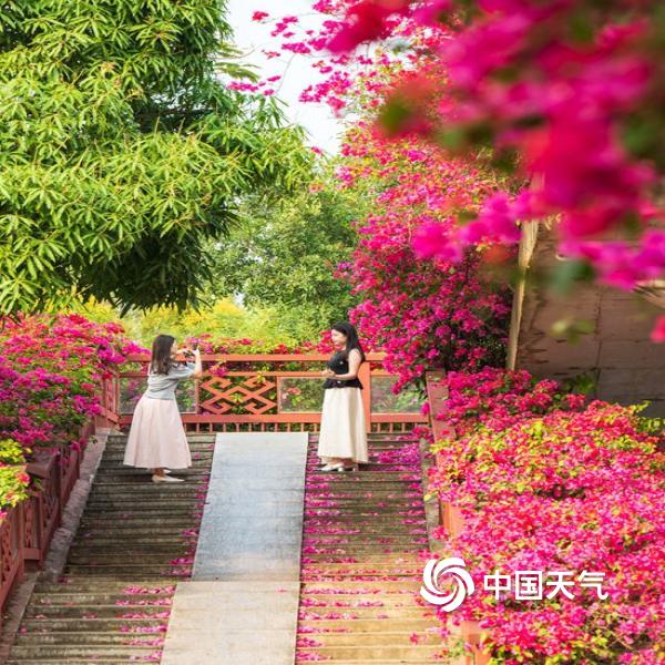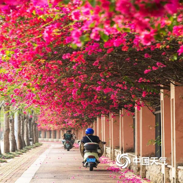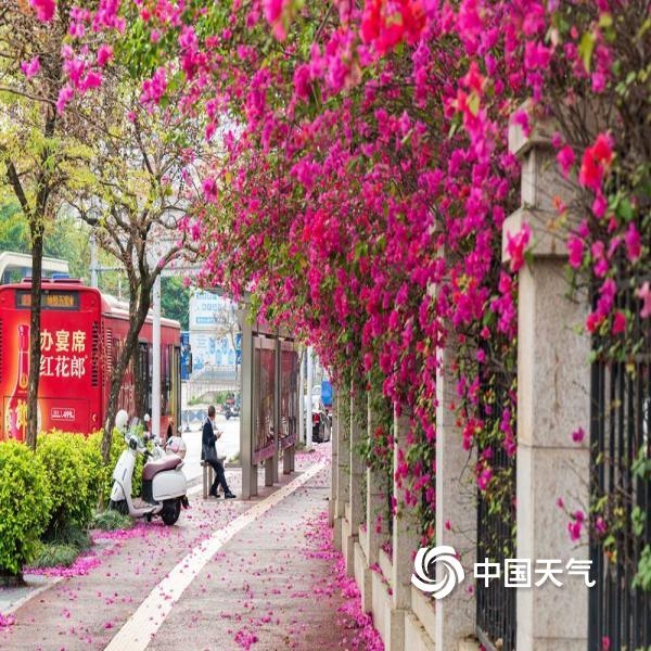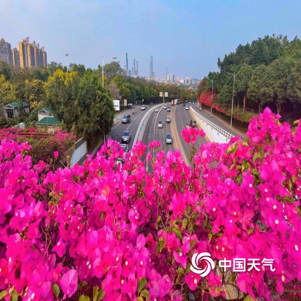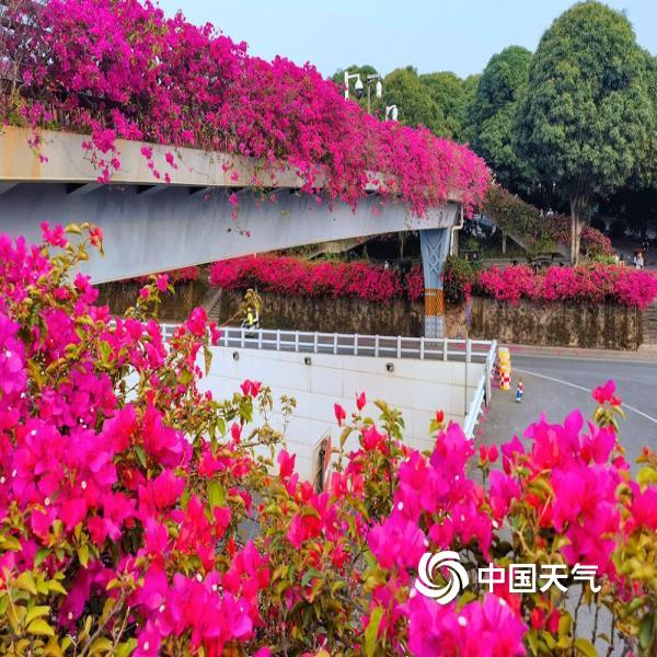 近日,广西南宁三角梅迎来盛花期,城市过街天桥、街道绿化带和各大公园被娇艳的花朵包围,春意盎然,美不胜收。