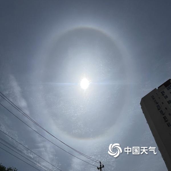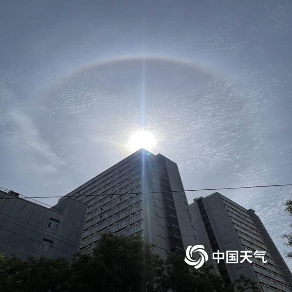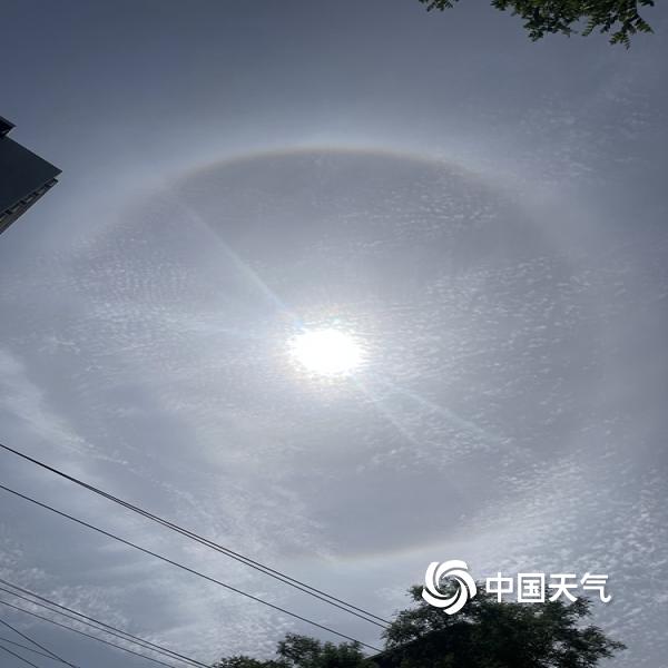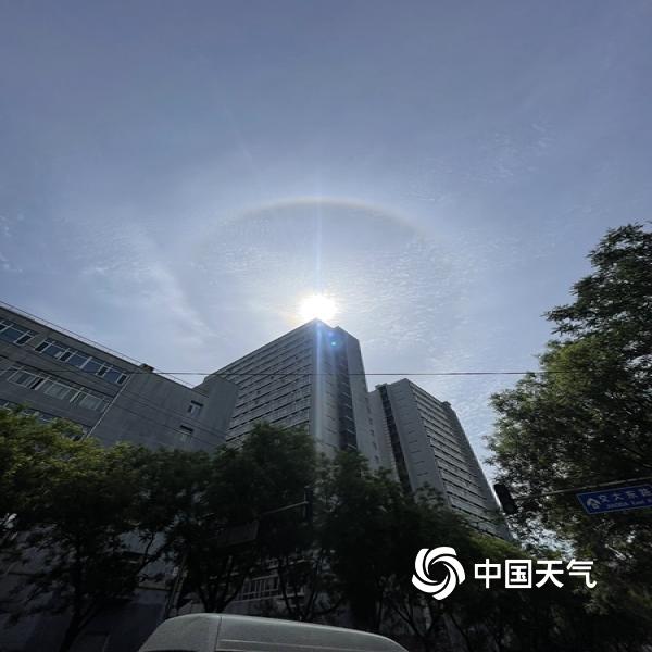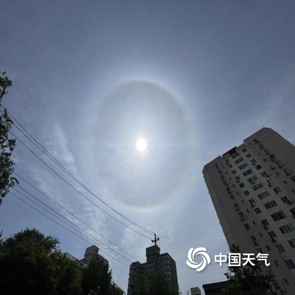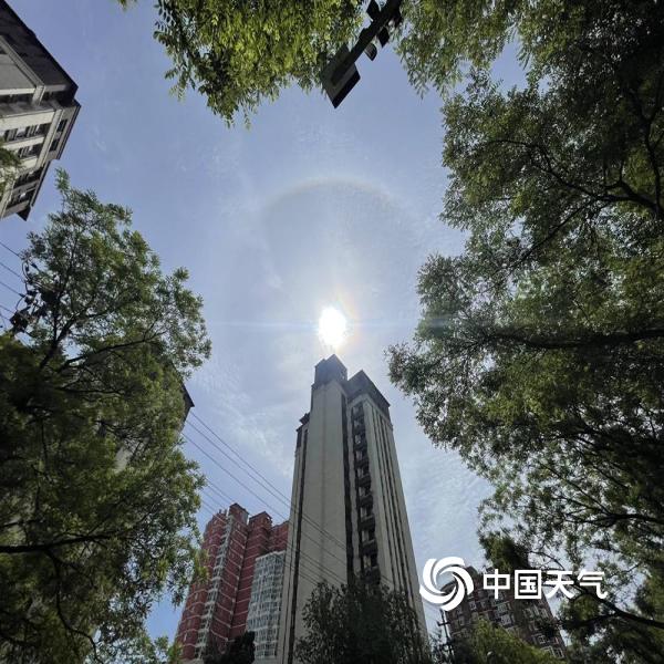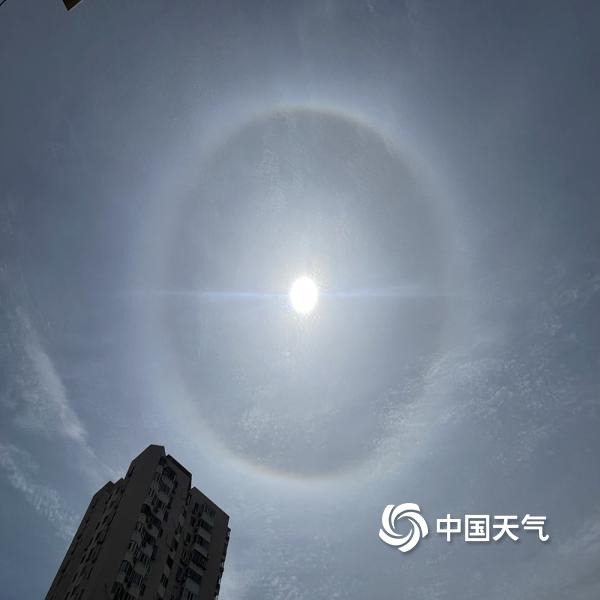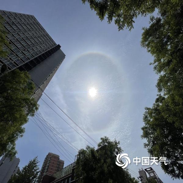 今天(5月4日)上午,北京天空出现巨大日晕,彩色光环清晰可见。图片拍摄于交大东路。