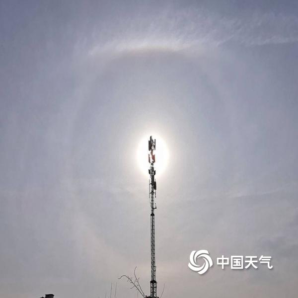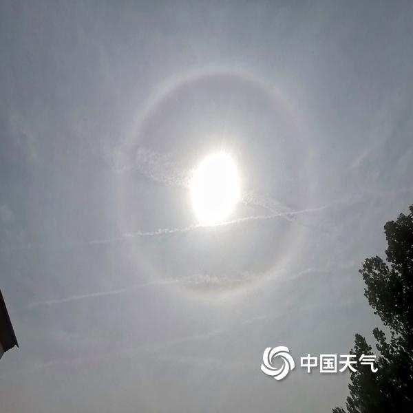今天(5月25日)上午,河北省邢台市巨鹿县出现巨大日晕,太阳仿佛自带光环,震撼十足。