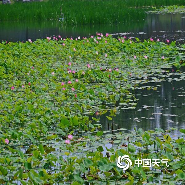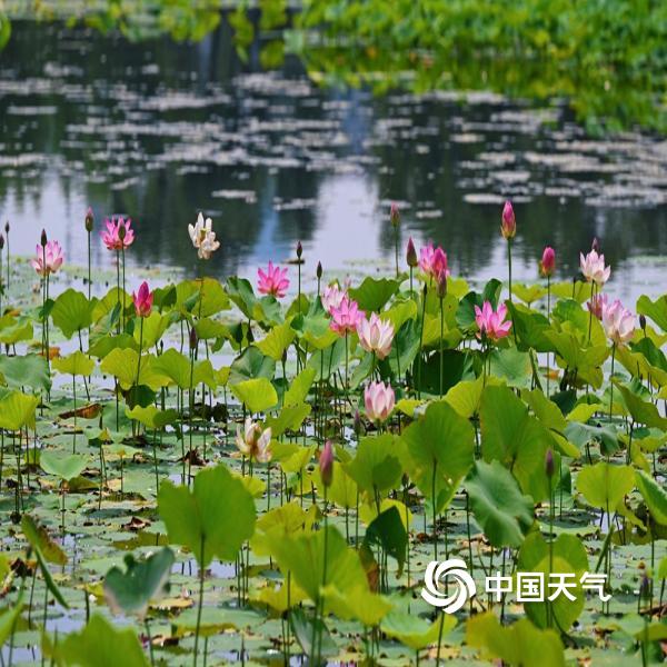 近日,北京圆明园扇面湖荷花已经开放,花容清丽婉约,香气阵阵,赏荷正当时。