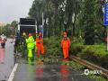 中国天气网讯 8月25日早晨,受台风“剑鱼”影响,海南三亚街头大树倒伏、交通受阻、积水严重,各行各业工作人员及市民投入救灾抢险之中。(孙清/视觉中国/版权图片 来源视觉中国)