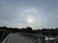 中国天气网讯 8月26日早晨,北京天空出现日晕,宛如明珠挂在空中,美丽壮观。(图/中国天气网 王晓)