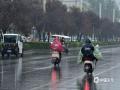 河南汝州迎来降雨 路面湿滑影响出行
