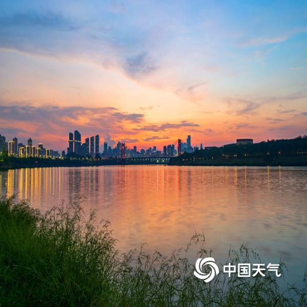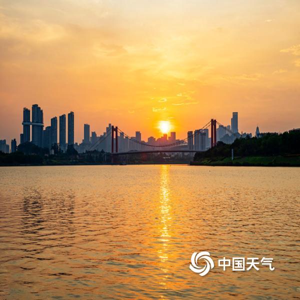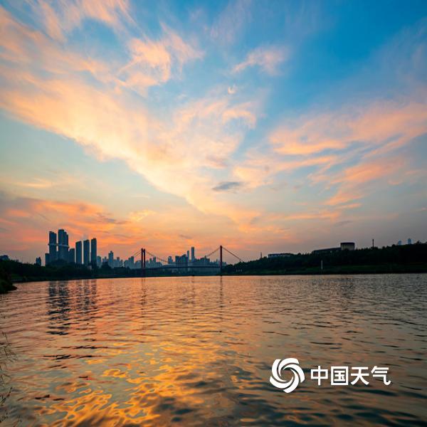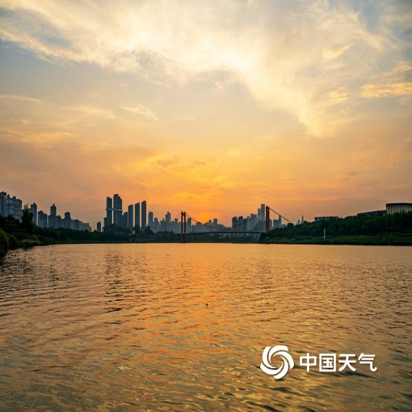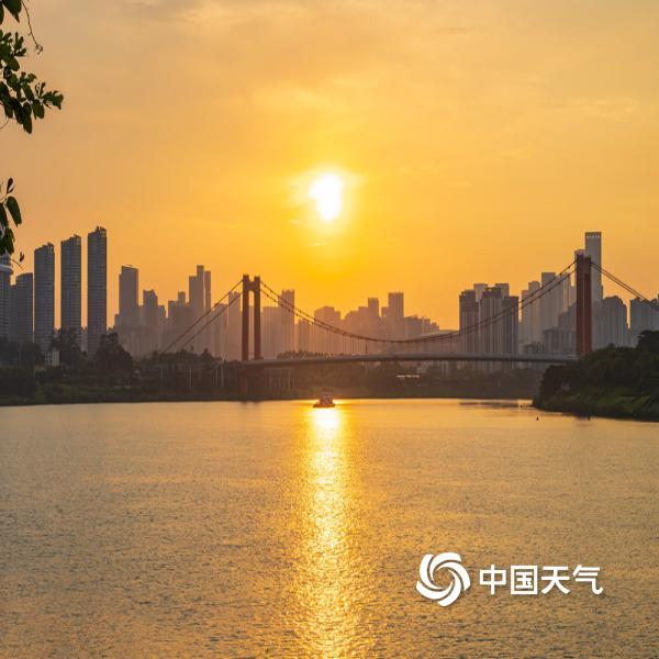 昨天(9月19日)傍晚,广西南宁市城区落日熔金,与邕江河水共同上演水天一色的景象,宛如迷人画卷。