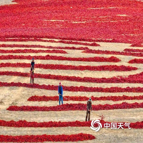 9月11日,甘肃省张掖市高台县黑泉镇十坝珍珠滩辣椒晾晒场上,高台县黑泉镇十坝...