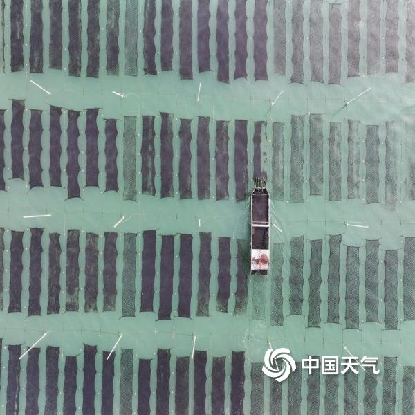 10月10日,养殖户在江苏省连云港市赣榆区沿海采收头茬坛紫菜。(司伟/视觉中...
