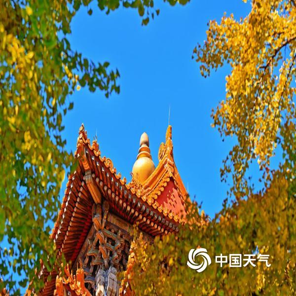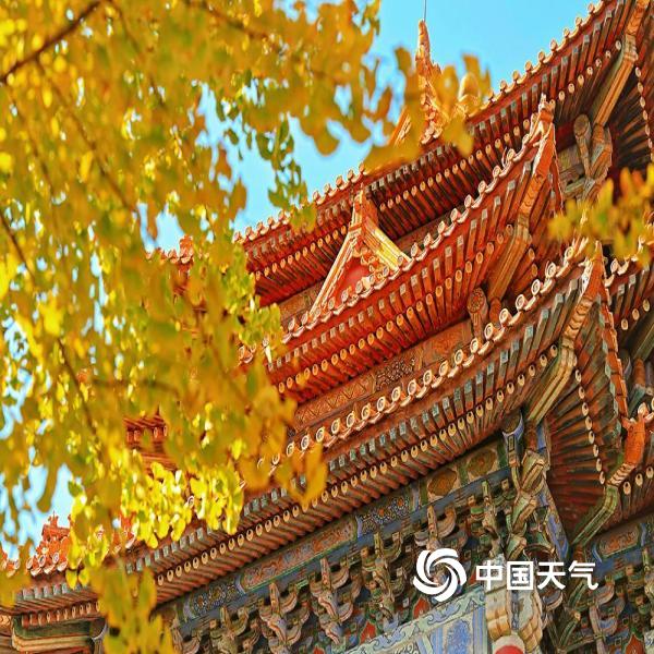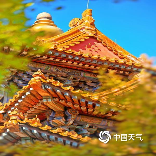 今天(10月21日),北京天空湛蓝纯净,故宫角楼的飞檐翘角与秋叶相得益彰,尽显古典之美。
