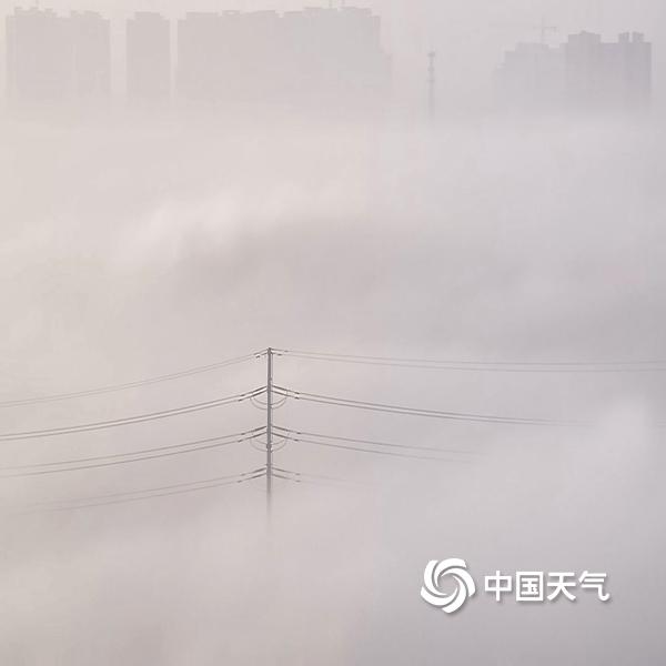 10月26日,河北省保定市蠡县,平流雾笼罩下的县城与乡村,美景如画,宛如仙境。