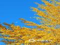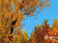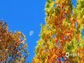 中国天气网讯 今天(11月10日),北京天空湛蓝,月亮悬于天幕之上,金色的叶片仿佛将日光碎成点点金光,与那抹清浅月痕相映,美如画卷。(图/中国天气网王晓)