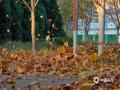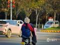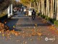 中国天气网讯 今天(11月18日)早晨,河南汝州市区风力强劲,自行车被吹倒,落叶遍地,部分地区出现结冰,市民包裹严实出行。(图文/黎新民)