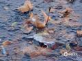 河南汝州现大风降温 风卷落叶寒凝冰生
