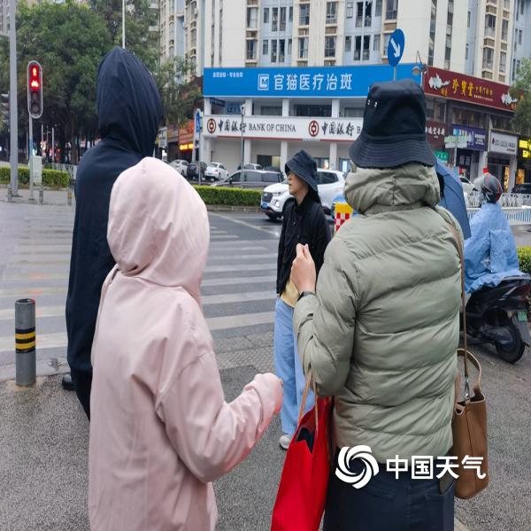 今天(11月18日)早晨,广西南宁城区风雨添寒凉,市民纷纷换上厚装出行。