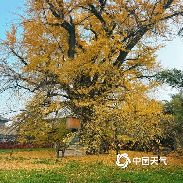 11月4日,陕西西安市长安区古观音禅寺,千年银杏树金黄一片,沉淀着静谧古朴的时光韵味,令人震撼。