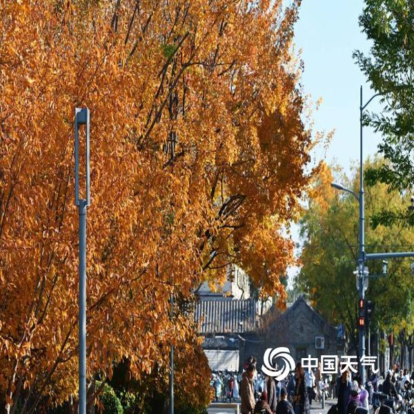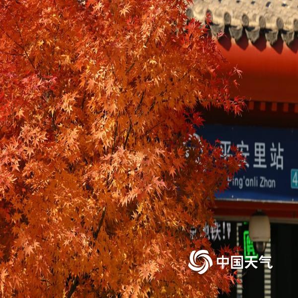 中国天气网讯 赏秋景不必远足,地铁站外也藏着秋日限定。在北京地铁平安里站,浓...