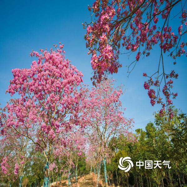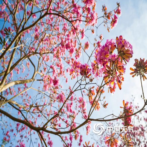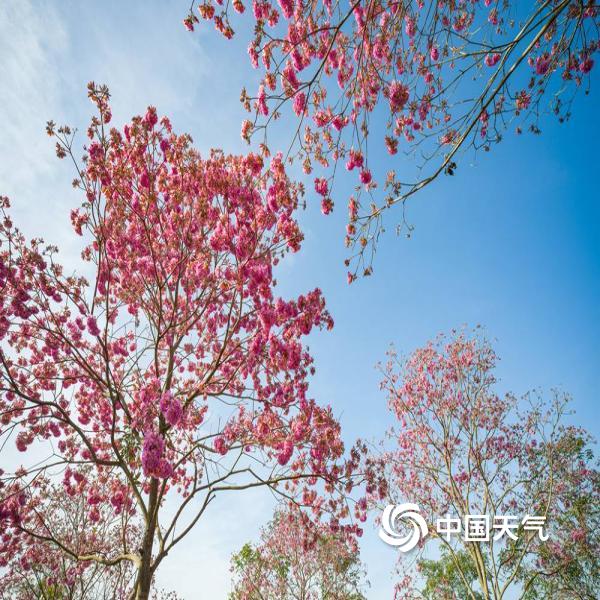 今天(11月28日),广西南宁暖阳高照,紫花风铃木花满枝头,满含浪漫气息,尽显生机与诗意。