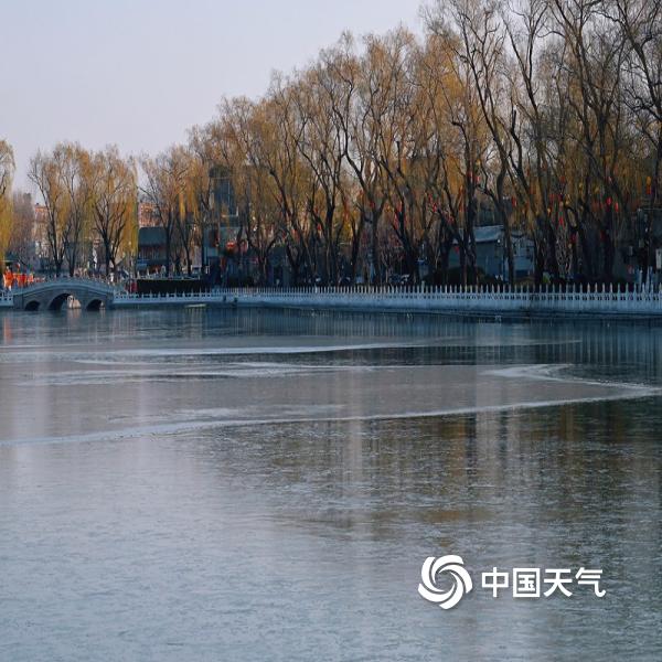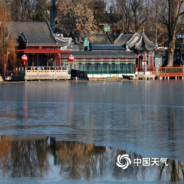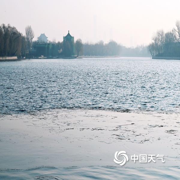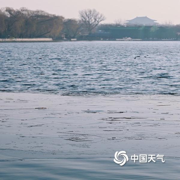 12月11日,北京什刹海尚未完全封冻,呈现半冰半水的状态,想要户外滑冰还需等待。