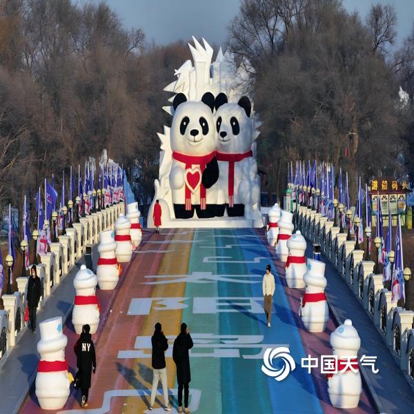 12月13日,黑龙江省哈尔滨市,第二十七届哈尔滨冰雪大世界园区外,一组巨型雪...