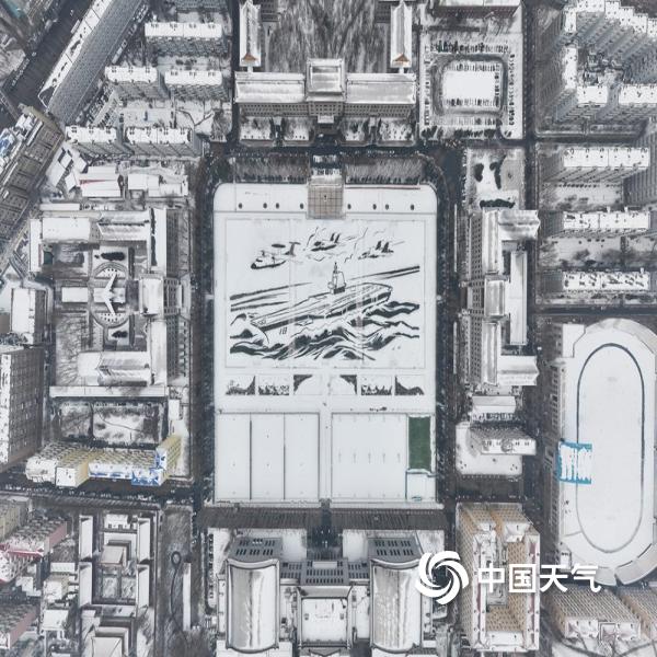 哈尔滨工程大学体育场上,一艘以雪铸成的“航母”已破浪起航。