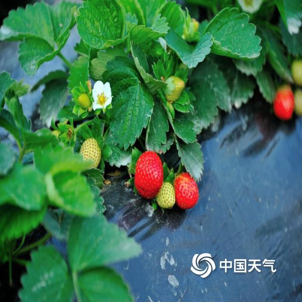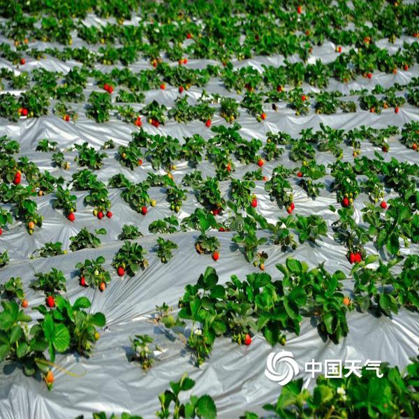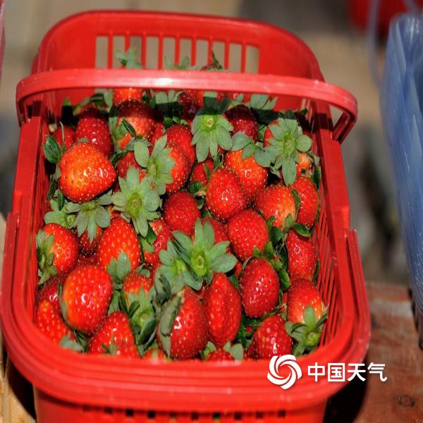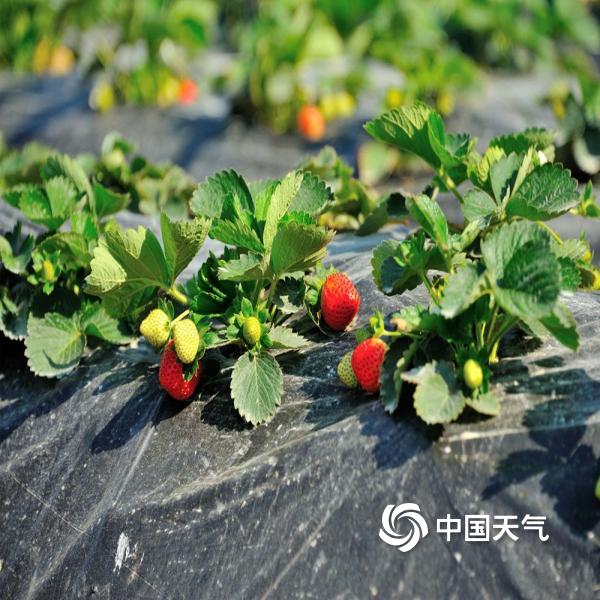 海南儋州天气晴好,市郊草莓园里的草莓陆续成熟,果农开始采摘果子,以供应节日市场。