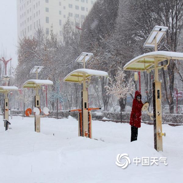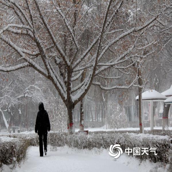 12月10日,新疆塔城地区裕民县出现降雪,雪花纷纷扬扬将大地染白,寒意十足。