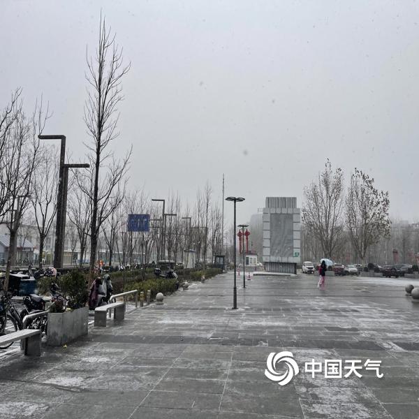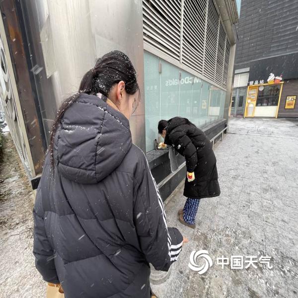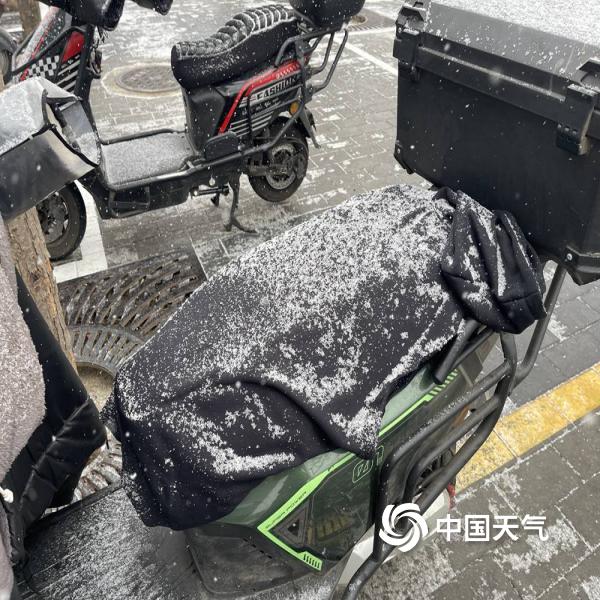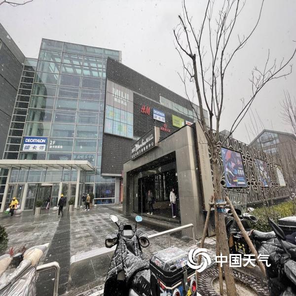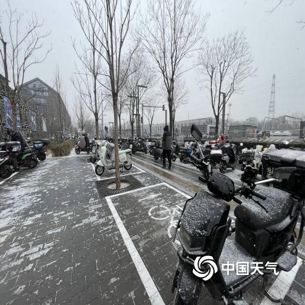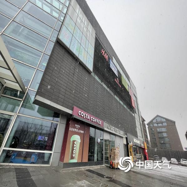 今天(12月12日)中午前后,北京城区降雪增强,雪花渐密,街头冬日氛围感开启。