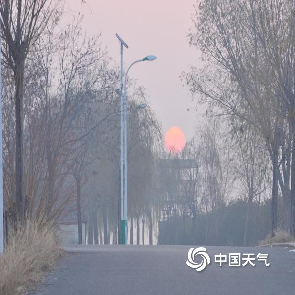 12月17日,河南平顶山市区,日出如笼纱。(图/黎新民)