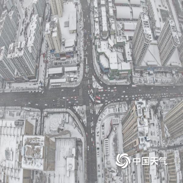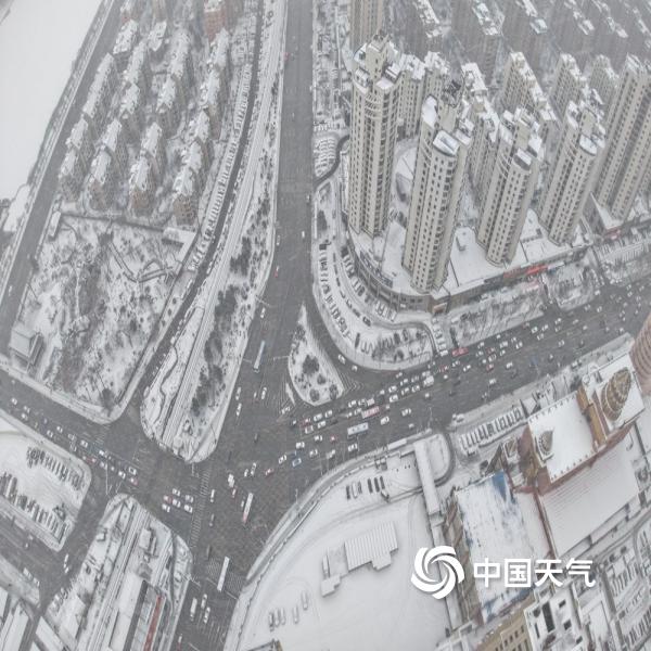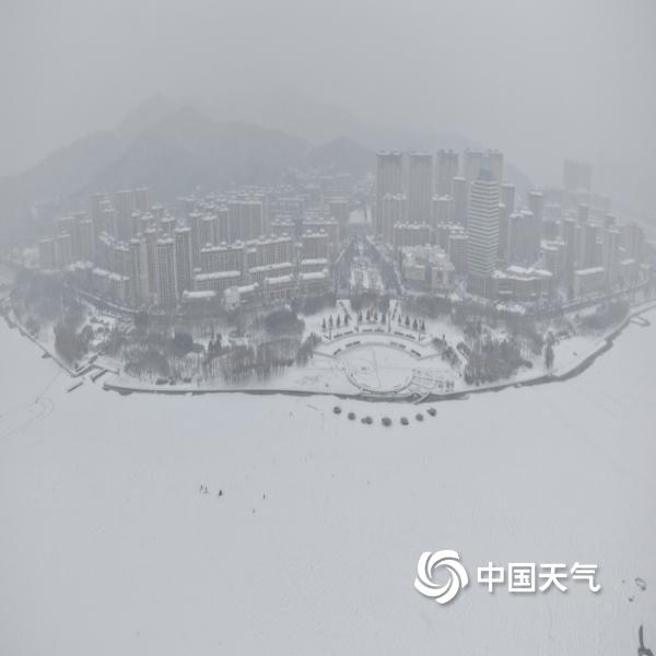 辽宁本溪迎来降雪 航拍视角看雪中城市