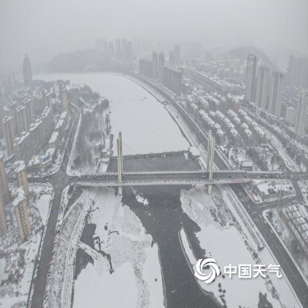 中国天气网讯 12月23日,辽宁本溪迎来降雪,空中俯瞰城市,如换“银装”。(...