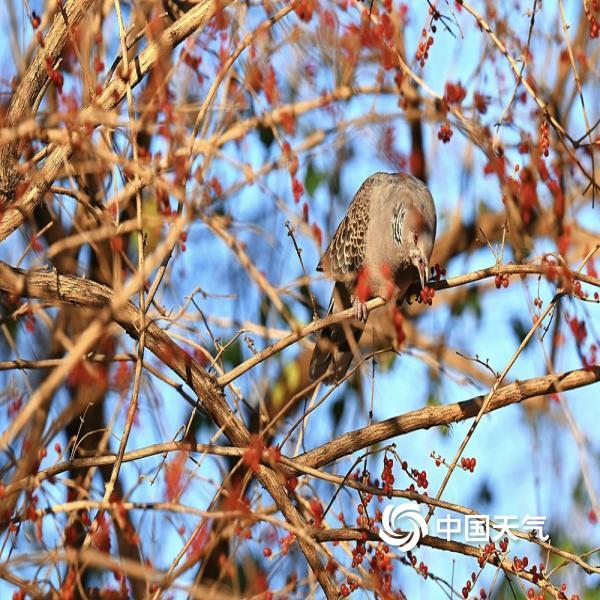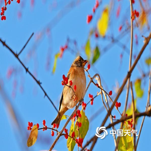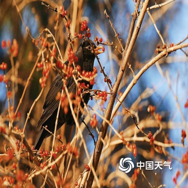 作为常见的绿化植物,忍冬的果实红似玛瑙、形如红豆,为鸟儿提供御寒能量,啄食声里藏着生灵与季节的默契,也为冬日京城增添一抹灵动生机。