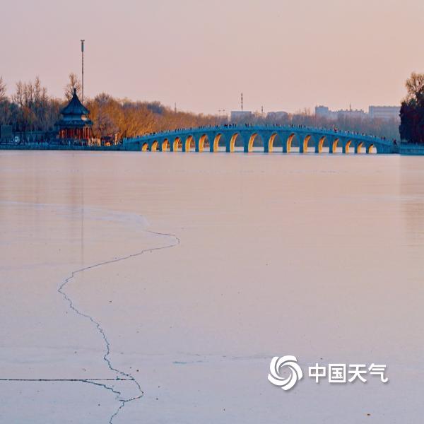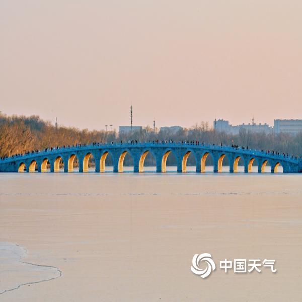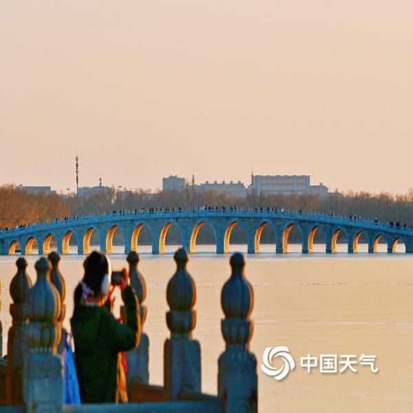 12月8日傍晚,北京天气晴朗,夕阳西下,颐和园十七孔桥再迎金光穿洞景观,为冷冽的冬日增添一抹亮色,吸引游园市民纷纷驻足观赏。