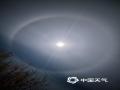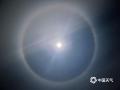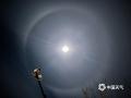 中国天气网讯 昨天(2026年1月1日)迎来元旦,随着夜幕降临,北京延庆出现清晰月晕景观。明月被一圈光环环绕,轮廓分明,为元旦之夜的天空增添了独特的景致。月晕,是光透过高空卷层云时,受冰晶折射作用,使七色复合光被分散为内红外紫的光环或光弧,围绕在月亮周围产生光圈,与彩虹产生的原理一样。(图/中国天气网王晓)