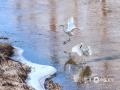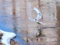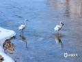陕西延安河面尚未封冻 白鹭悠闲觅食